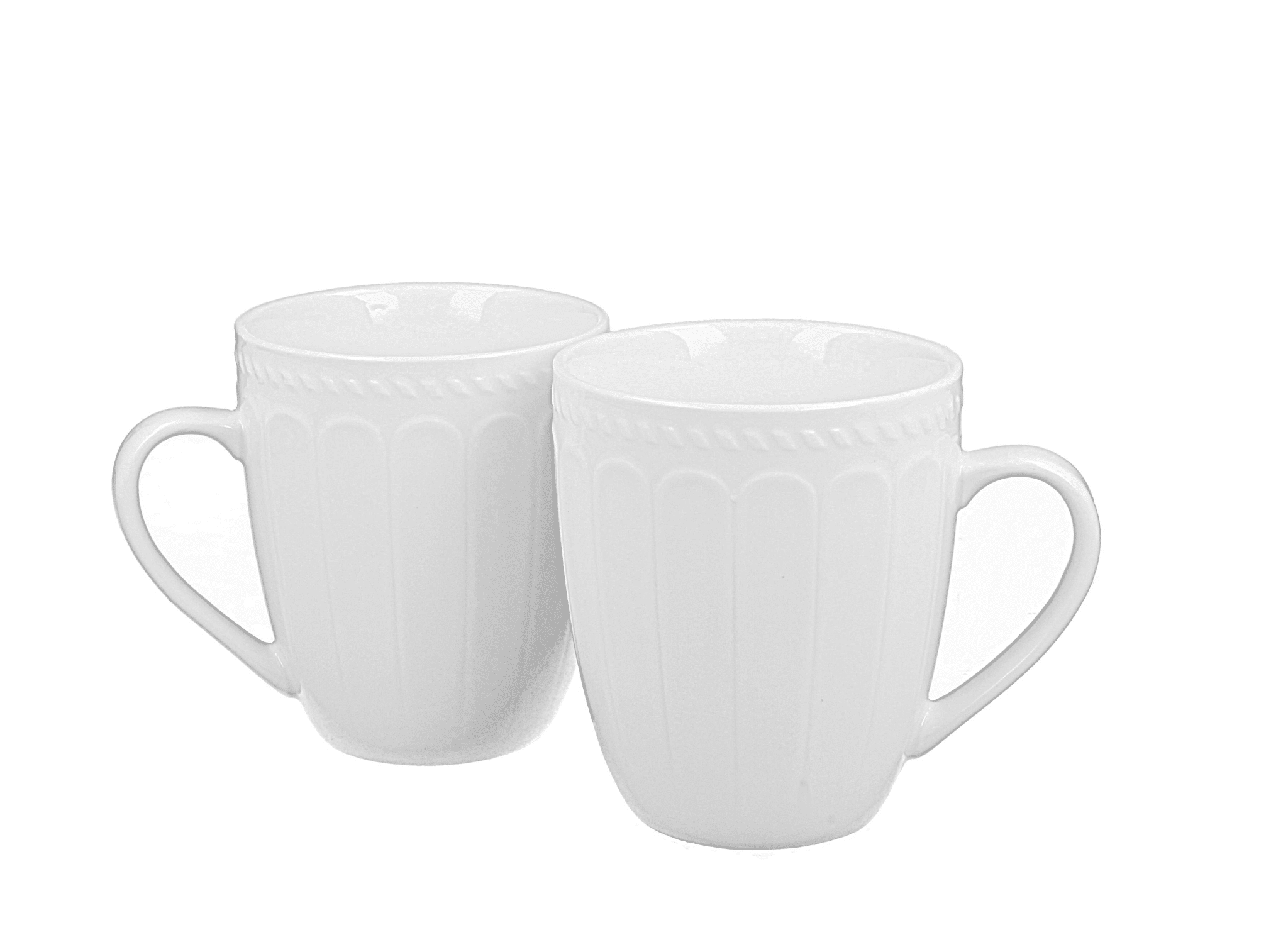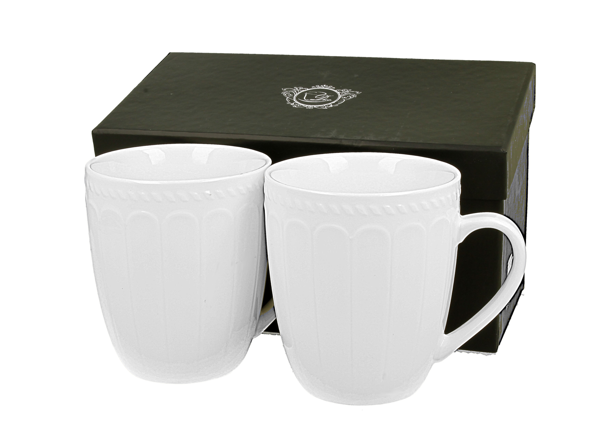 Duo de belles tasses en porcelaine motifs en relief d'inspiration grecque, avec coffret cadeau. Délicates et naturellement simples.