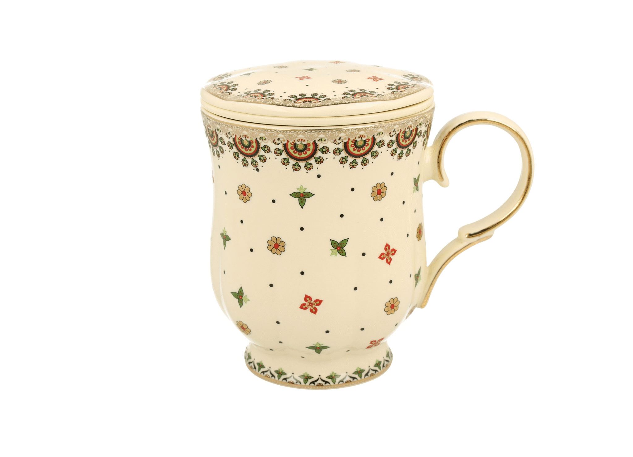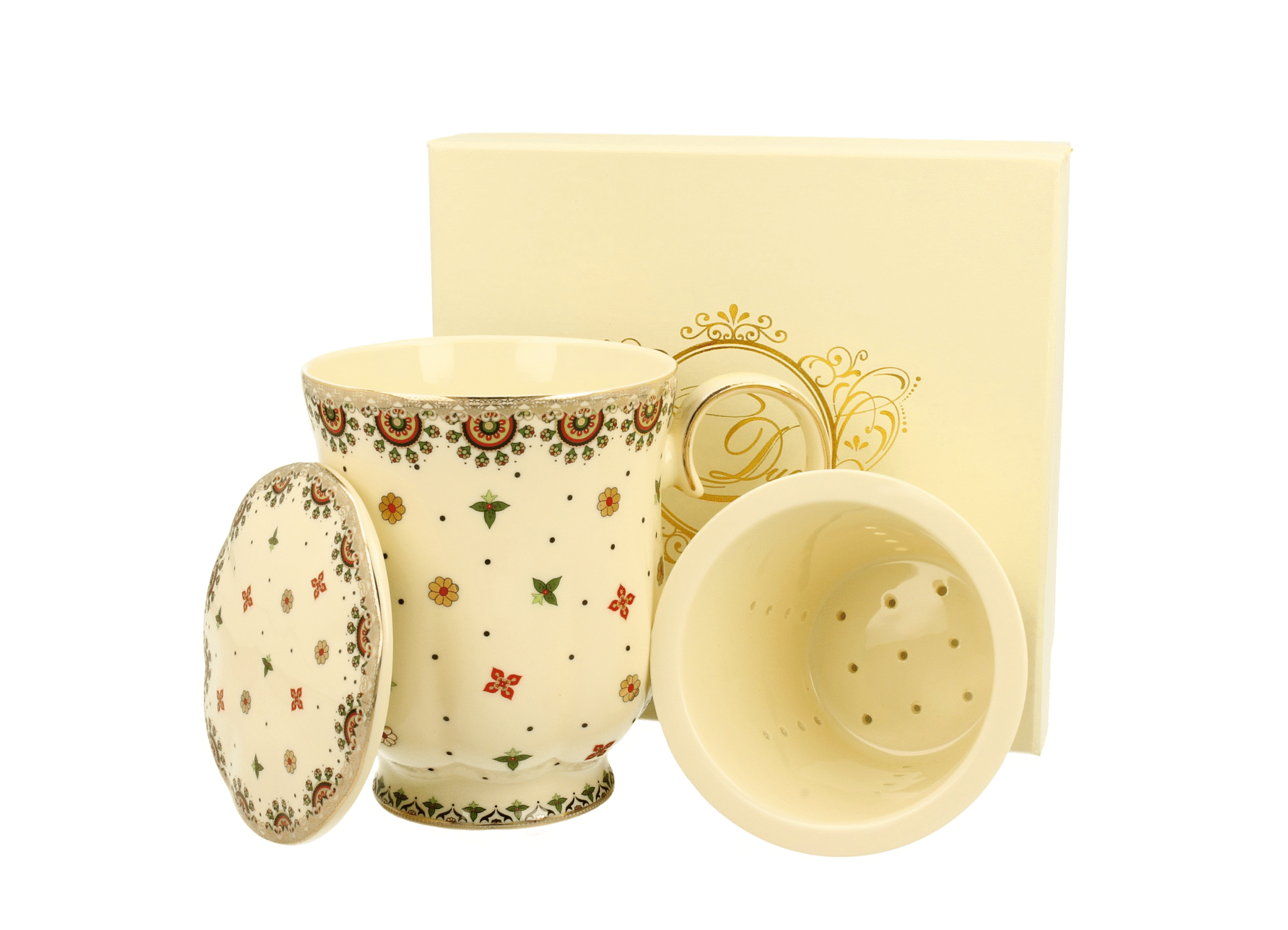 Grande tasse avec infuseur et couvercle, en porcelaine New Bone China.