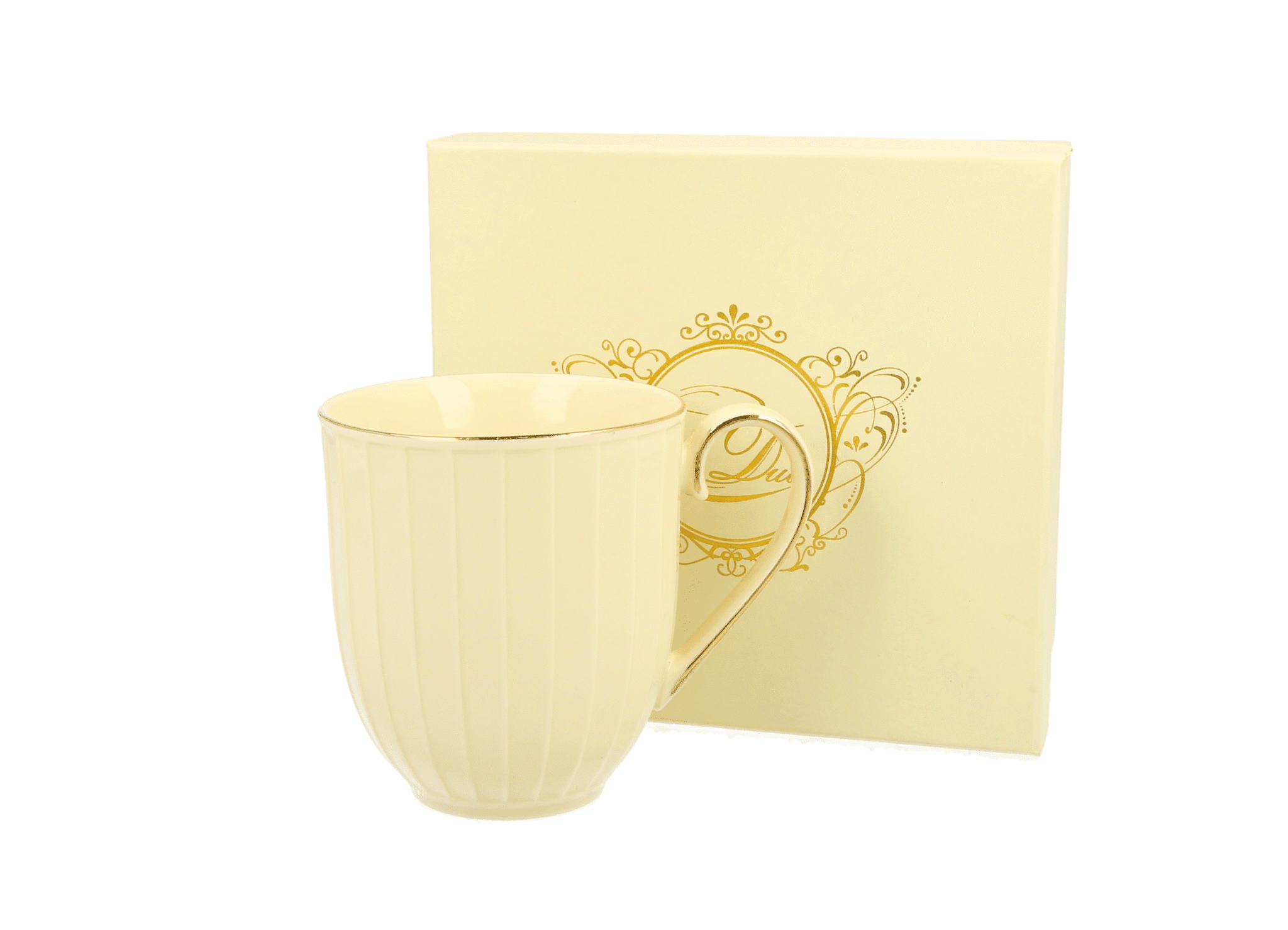 Cette tasse écrue est ornée d'une dorure qui lui donne un style élégant et raffiné pour le plaisir des yeux.